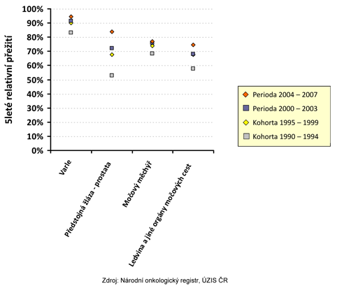 V září 2010 byla ve spolupráci České onkologické společnosti ČLS JEP a České urologické společnosti ČLS JEP provedena aktualizace referenčních hodnot populačního přežití onkologických pacientů pro recentní období let 2004–2007. Tato analýza pracuje s aktuálně dostupnými daty Národního onkologického registru ČR s ukončeným sledováním pacientů k 31. 12. 2007. Stejně jako u dříve publikovaných hodnot z období 2003–2005 jsou tak nyní k dispozici aktuální referenční hodnoty populačního přežití léčených pacientů s urologickými malignitami v ČR. Hodnoty přežití dosahovaného u českých pacientů jsou v tomto krátkém souhrnu interpretovány ve vztahu k protinádorové léčbě a také z hlediska dlouhodobého vývoje.